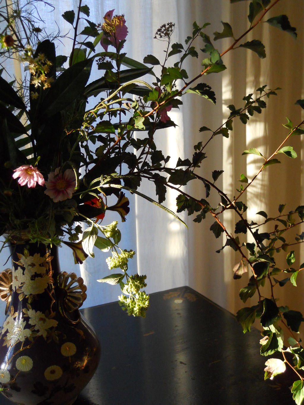 Soon it will ‘really’ be fall and we will no longer have temperatures above 70 or 80 degrees for days on end. The trees will take on their delicious and familiar cloaks and then leave them on the ground for us. The light changes this time of year along with the plants, animals, insects. It seems I am not alone in my adoration of autumn. Flower growers posting pictures of their fall bounties, most share the love for this season. It is a special time for many reasons so I intend on relishing all the beauty before my eyes until the next season shows its loveliness, then my eyes will have yet another feast.
